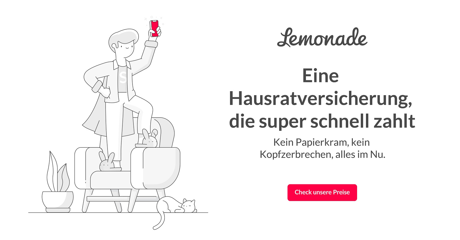 Angetrieben von Künstlicher Intelligenz und sozialem Engagement, hat Lemonade sich zum Ziel gemacht, Papierkram zu vermeiden und alles unmittelbar zu erledigen und bietet über seine Website und seine App eine einzigartige und transparente Versicherungspolice an.